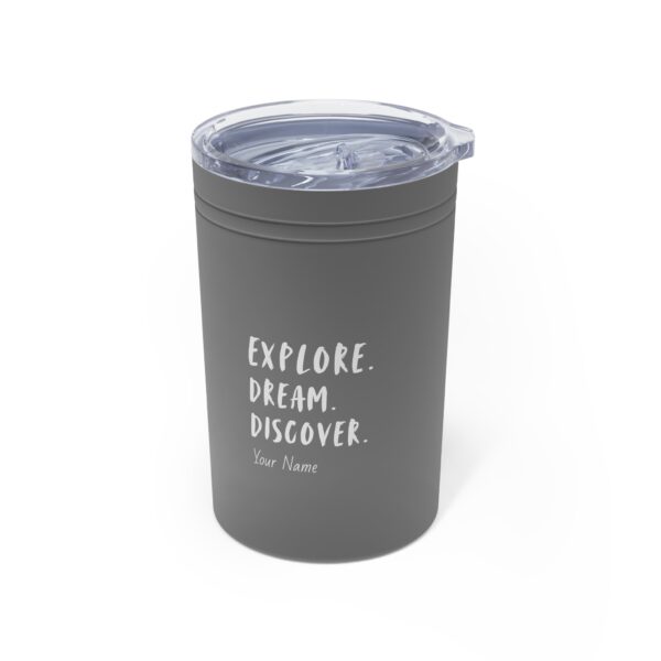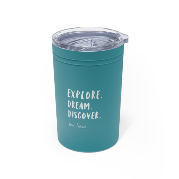 This personalized Travel Tumbler features double-wall vacuum insulation with a clear lid. It features a narrower bottom to fit most standard cup holders.